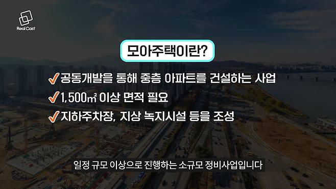 쉽게 말하자면, 작은 주택들을 모아서 대단지 아파트처럼 만드는 것입니다. 해당 사업은 재건축, 재개발 사업과 달리 추진위원회 승인과 관리처분인가 절차가 생략되기 때문에 사업기간이 짧습니다. 민간 재개발보다 최대 6년 더 빠르게 사업이 진행되는데요. 이러한 장점으로 인해 최근 서울시 내에서는 모아주택 사업에 대한 관심이 남다릅니다.