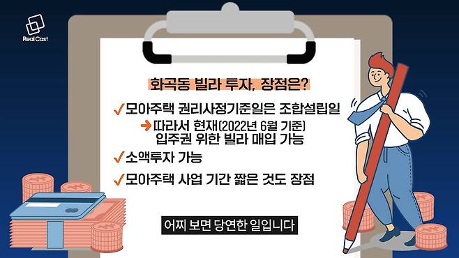 또한 모아주택은 권리사정기준일이 조합설립일이기 때문에 현재(2022년 6월 기준) 입주권을 위한 빌라 매입이 가능합니다. 지금 매매 거래를 해도 아파트 입주권을 받을 수 있는 것이죠. 소액투자가 가능하고, 모아주택 사업 기간이 짧고, 지금 투자를 해도 아파트 입주권을 가질 수 있으니 화곡동 빌라 매매에 많은 이들이 몰리는 것도 어찌 보면 당연한 일입니다. 그렇다면 여러 장점을 지닌 화곡동의 투자 가치는 어떨까요?