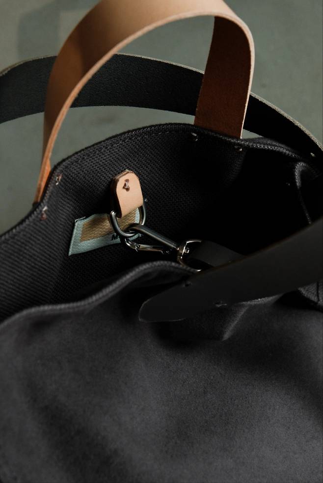 표면은 부드럽지만 형태가 쉽게 무너지지는 않는다. 천 가방 특유의 편안함은 유지하면서도 실루엣이 안정적으로 잡혀 있고, 들었을 때 전체 비율이 단정하게 정리된다. 곳곳에 더해진 가죽 디테일이 중심을 잡아줘 분위기도 자연스럽게 차분해진다. 캐주얼과 포멀 사이에서 균형을 잘 맞춘 느낌이다.