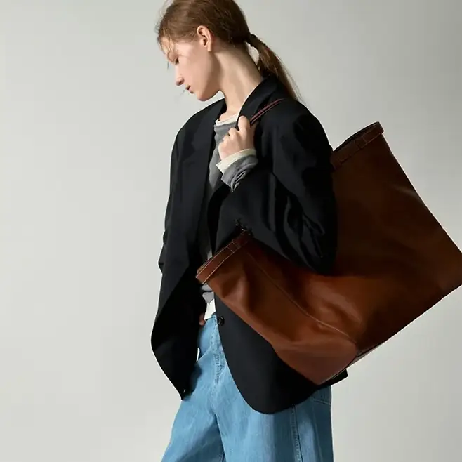 체력이 예전 같지 않은데 이런 흉기같은 가방을 들고 다녀야 한다니. 이제는 노트북이 들어가는 ‘불편한’ 가방이 아니라, 몸에 무리가 가지 않으면서도 서류나 텀블러를 더해도 형태가 크게 흐트러지지 않는 가방이 필요하다. 그리고 늘 그렇듯 무엇보다 중요한 조건은 매일 들어도 질리지 않을 것. 옷을 고를 때처럼, 가방도 결국 손이 가는 디자인이어야 오래 쓸 수 있으니까.