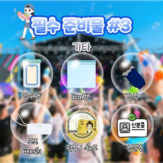 이번에 소개할 워터밤 준비물을 꼭 챙겨가서 여름의 무더위를 잊을 정도로 신나게 놀아보세요!