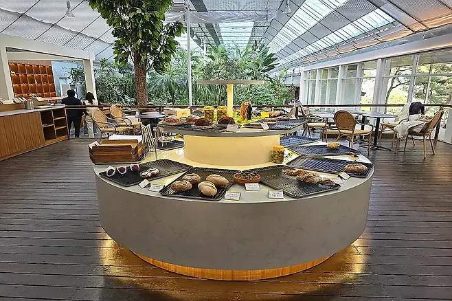 빵과 음료를 파는 카페 공간은 밝은 통창으로 바뀌었다. 이곳에서 비가 내리는 풍경을 바라보면, 절로 힐링된다는 평이 잇따른다.