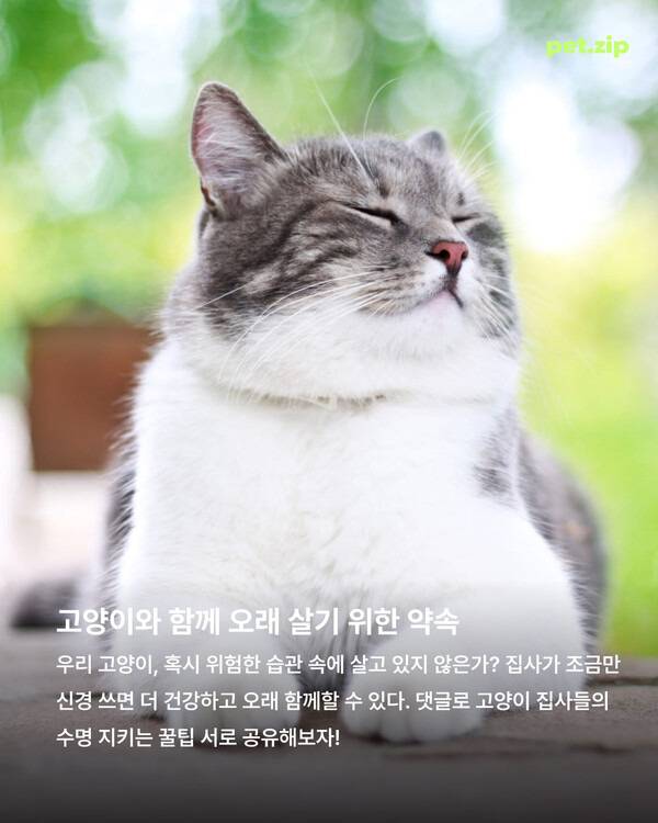 고양이는 작은 환경 변화에도 크게 반응하기 때문에 집사의 배려가 건강을 좌우합니다. 지금 생활 속 위험 요소를 하나씩 점검하는 것만으로도 더 오래, 더 건강한 시간을 함께 보낼 수 있습니다.