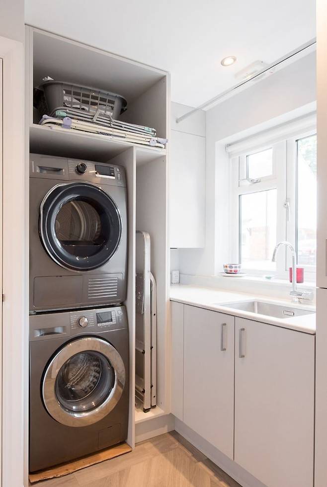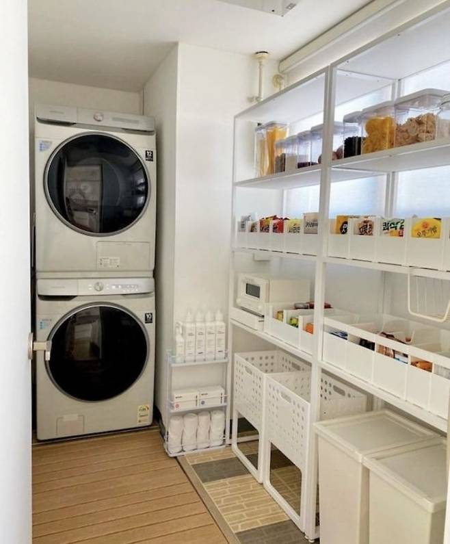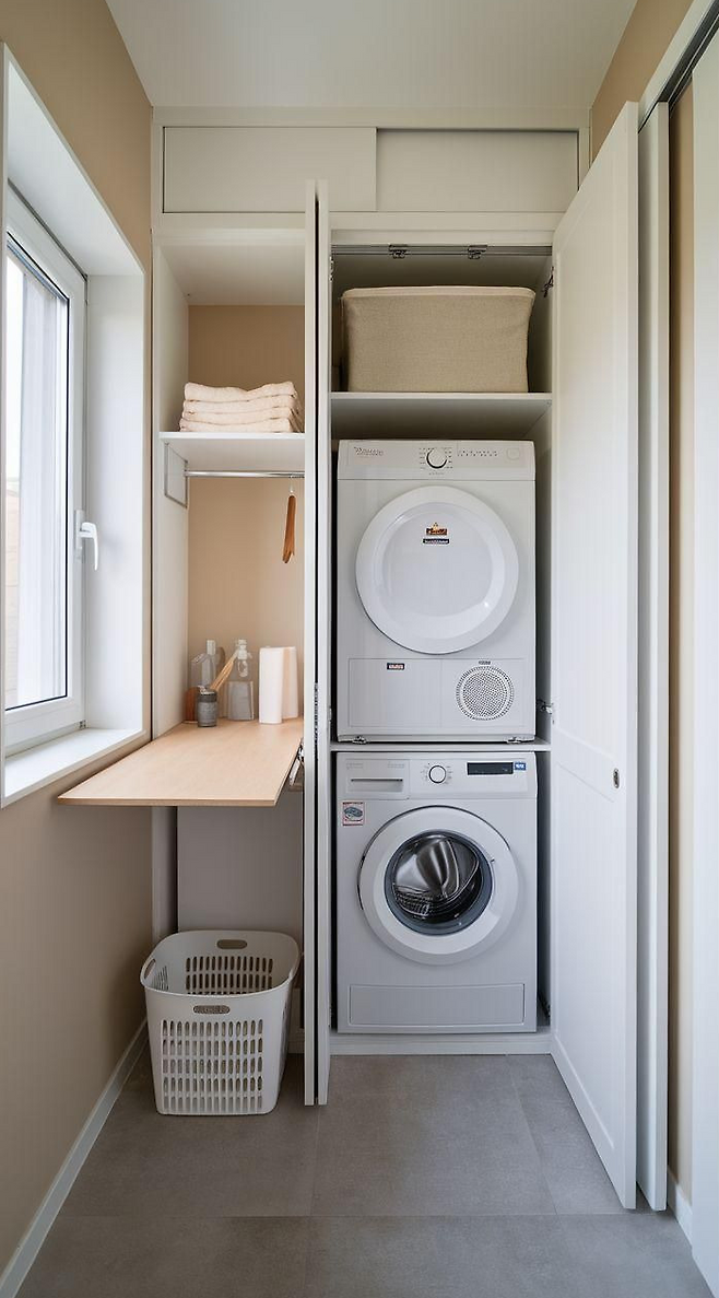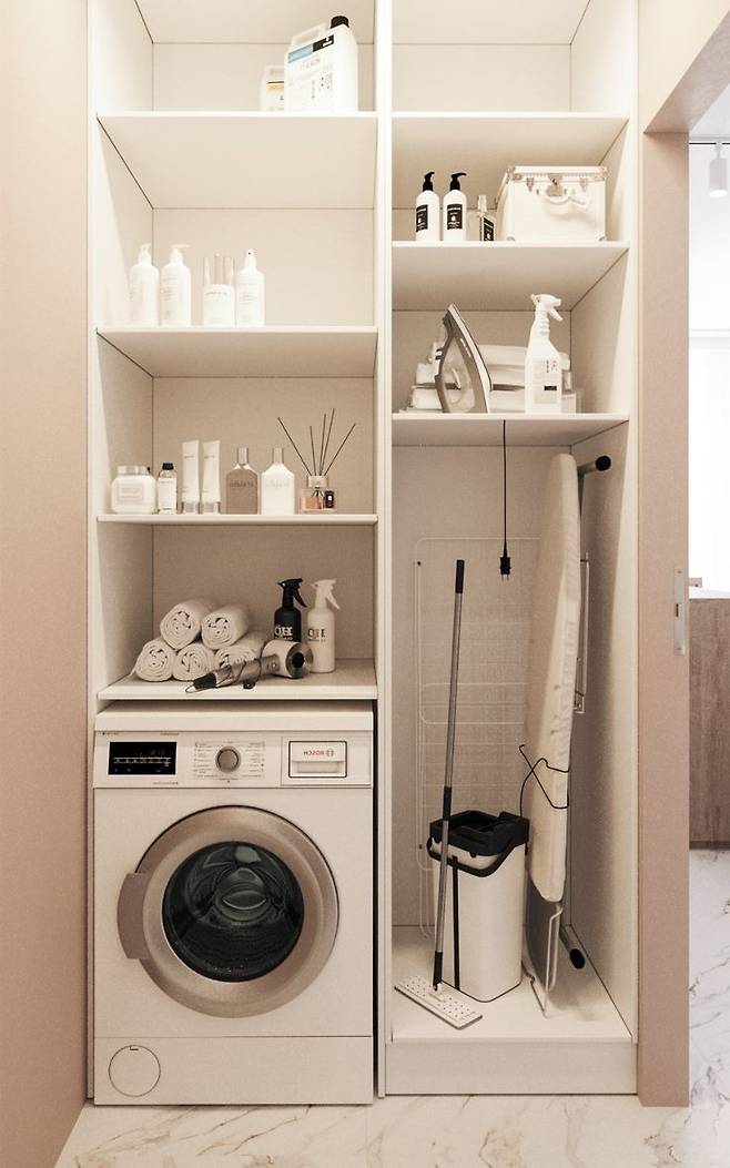 세탁기 옆 수납장? 창문 밑 공간? 배치가 90%입니다