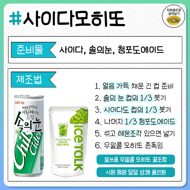 사이다에 섞어 마시면 진짜 맛있는 음료 꿀조합