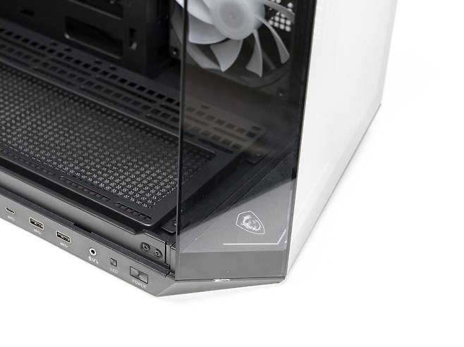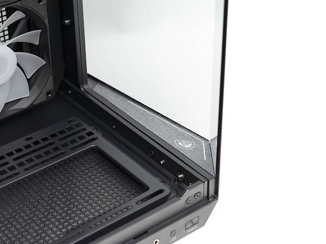 전면부에 위치한 MSI 로고도 LED 램프가 적용되어 있어 허브나 메인보드 ARGB 커넥터에 연결하여 색상 및 효과를 제어할 수 있습니다.