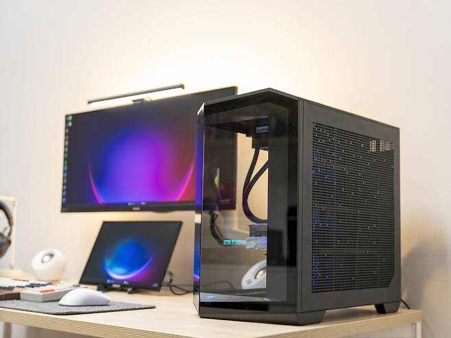 최근 PC 케이스 시장에서 유행하고 있는 트렌드는 바로 파노라믹케이스(어항케이스)입니다. 파노라믹케이스는 기존의 일반적인 PC 케이스에서 벗어나 독창적이고 감각적인 디자인을 강조한 제품으로, 전면과 측면이 투명한 강화유리 패널로 되어 있어 본체 컴포넌트의 RGB 조명을 한눈에 확인할 수 있도록 설계된 것이 특징입니다.