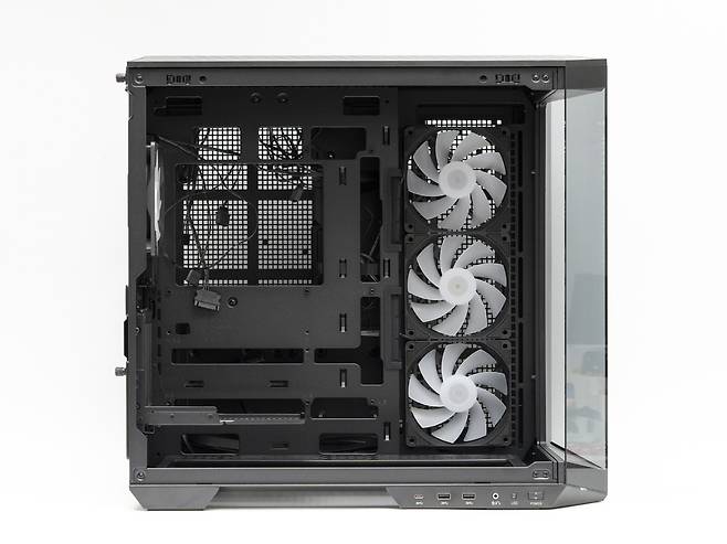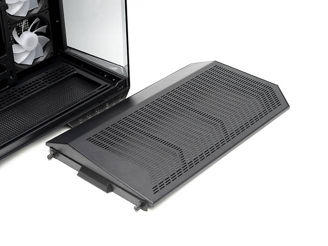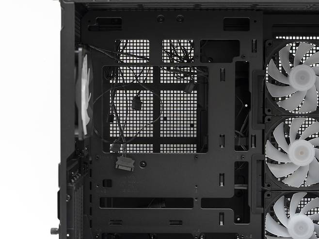 상 하단부에는 추가로 쿨링팬을 장착할 수 있는데요, 상단은 120mm x 3개 / 140mm x 3개, 하단은 120mm x 3개 / 140mm x 2개 또는 160mm x 2개를 지원합니다.