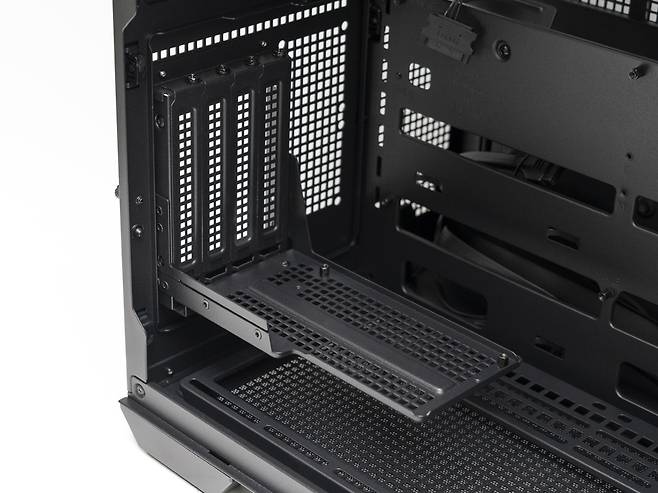 그래픽카드 지지대는 직접 장착할 수 있게 제공되며, 그래픽카드 쿨링팬의 간섭을 피할 수 있게 지지대의 각도를 조절할 수 있습니다.
