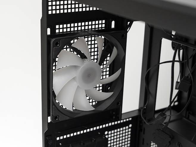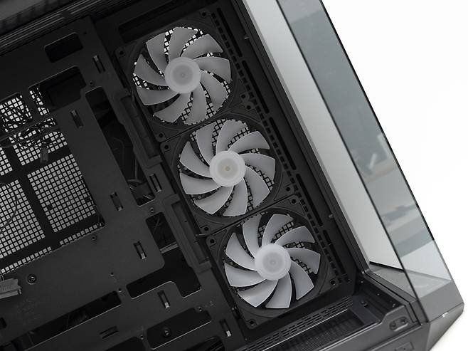 쿨링 팬 지원 : 상단 120mm x 3 / 140mm x 3, 후면 120mm x 1, 측면 120mm x 3 / 140mm x 2,