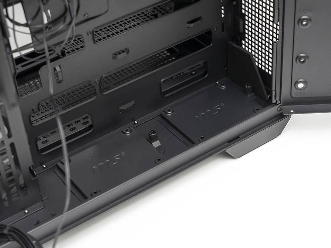 MSI MAG PANO 100R 프로젝트 제로는 내부를 두 개의 독립된 공간으로 나누는 듀얼 체임버 방식으로 설계되었는데요, 메인 체임버와 보조 체임버를 분리하여 좀 더 쉬운 조립과 선 정리가 가능하게 합니다.