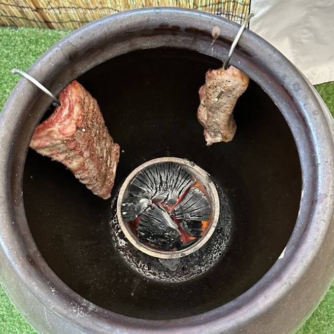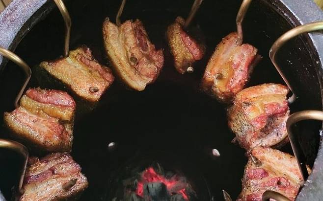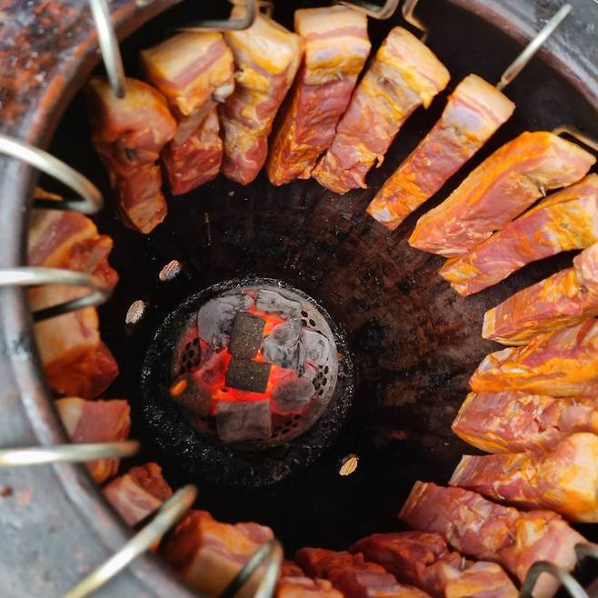 항아리에 참숯을 넣어 구워주는 육즙 가득한 삼겹살 맛집을 소개한다.