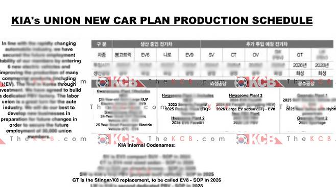 [M투데이 이세민 기자] 기아가 스팅어를 대체할 고성능 전기 쿠페 차량인 GT1(코드명)을 개발하고 있는 가운데, 내부적인 신차 생산 일정이 유출됐다.