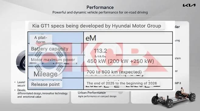한편, 생산 일정 이외에도 GT1의 여러 사양도 추가적으로 공개됐는데, 문서에 따르면 한국 자동차 제조업체가 사용하는 기아차 배터리 중 가장 큰 113.2kWh 용량의 배터리가 탑재된다.