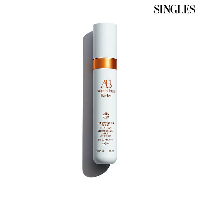 TFC8® 기술과 피부 리뉴얼에 최적화된 성분이 더해져 자외선 차단은 물론 스킨케어링 효과를 선사하는 더 선스크린 SPF50 30ml 19만7000원대 Augustinus Bader.