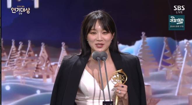 앞서 이날 정유민은 '2024 SBS 연기대상'에서 '커넥션'으로 미니시리즈 장르, 액션 조연상을 수상한 뒤 임신 사실을 깜짝 공개했다.