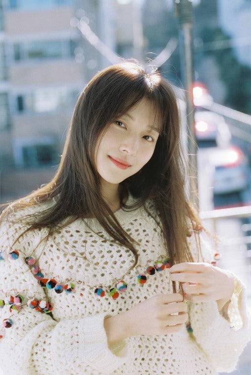 잔잔한 미소와 자연스러운 포즈, 은은한 스타일링이 어우러지며 조용한 일상의 따뜻한 분위기를 자아낸다.
