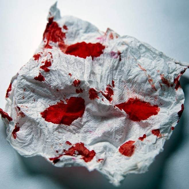 흘러나오는 코피를 막기 위해 휴지 등을 콧속에 넣는 경우가 있는데요. 이는 콧속 점막을 손상시킬 수 있으므로 매우 조심해야 합니다. 깨끗한 솜이나 거즈를 사용하는 것이 더 좋습니다.