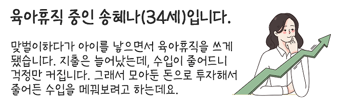 그리고 송혜나 님처럼 결혼하신 분들의 경우에는 금융자산을 나눠 부부가 각각 투자하는 방법이 있습니다.