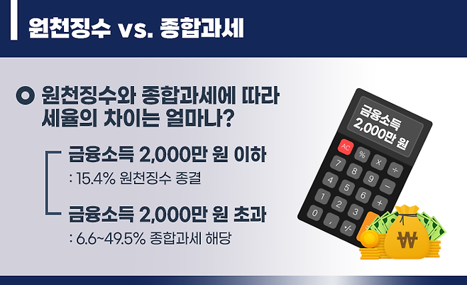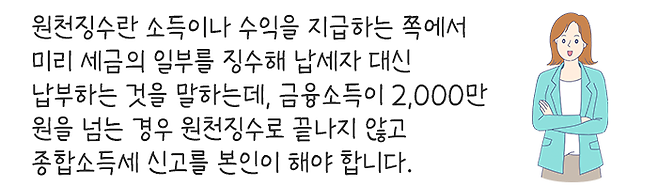 하지만 금융소득이 2,000만 원을 넘는 경우에는 원천징수로 끝나지 않습니다.