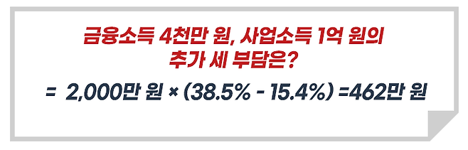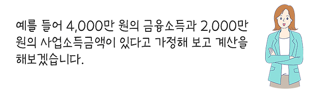 하지만 금융소득 외에 사업소득금액이 1억 원이 있으면 세 부담은 많이 달라지는데요.