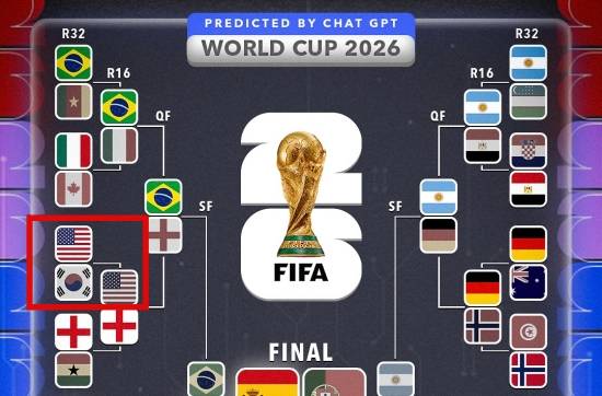 글로벌 축구 콘텐츠 매체 '스코어90'은 11일(한국시간) 인공지능(AI) 챗GPT에 2026 국제축구연맹(FIFA) 북중미 월드컵(캐나다·미국·멕시코 공동 개최) 토너먼트를 예측해 달라는 질문을 해 그 결과를 공개했다.