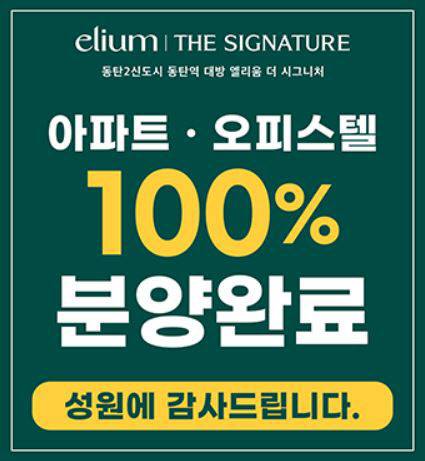 17일 부동산 업계에 따르면 지난달 분양한 동탄2신도시의 ‘동탄역 대방 엘리움 더 시그니처’ 아파트 464가구와 오피스텔 88실이 완판한 것으로 나타났다.