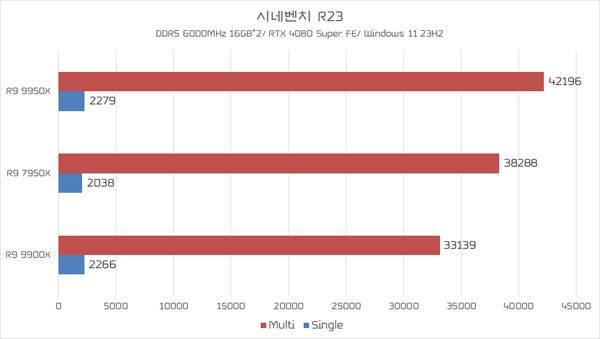 한편, 라이젠 9 9950X의 게임 성능은, 그래픽 카드 영향도 있겠지만, 메인스트림 모델들에 비해 향상폭이 두드러지지 않아, 게임 플레이 비중이 크다면 향후 출시될 X3D 모델을 기다려 보는 것이 좋겠다.