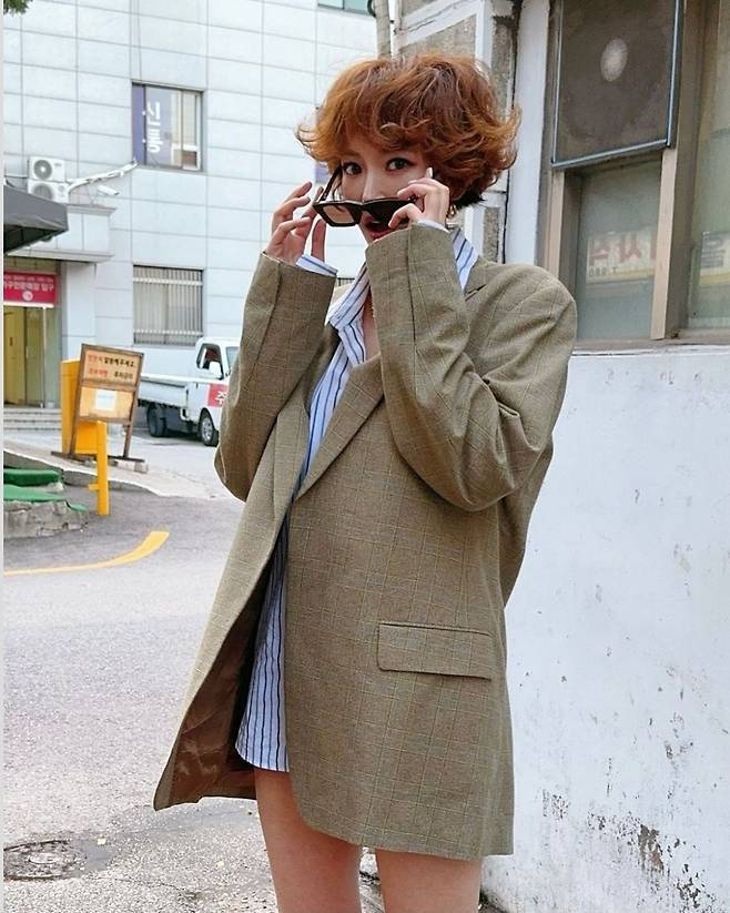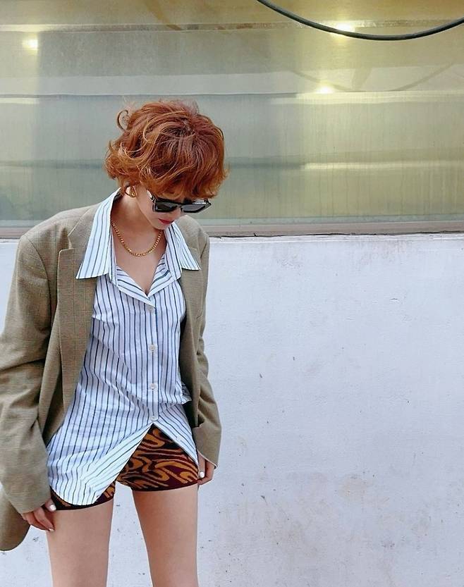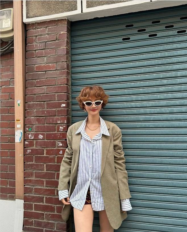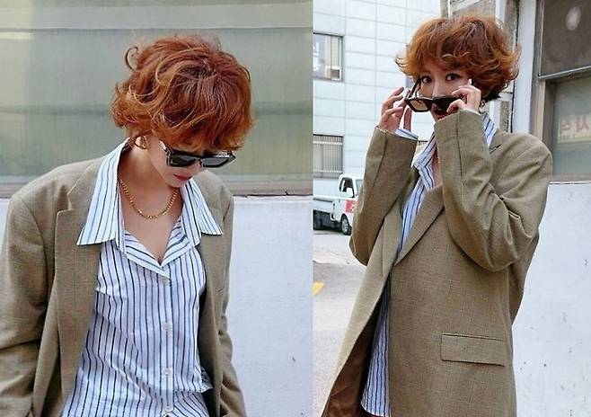 특히 밝은 오렌지 브라운 색의 헤어 컬러가 더욱 스타일리시하고 밝은 인상을 자아냈습니다.