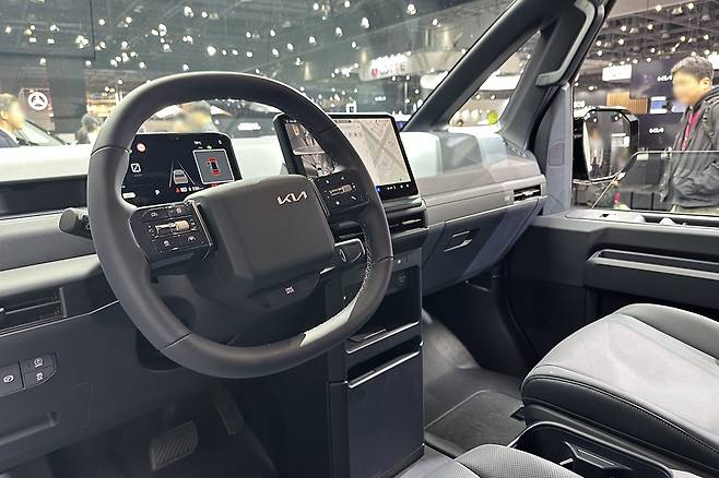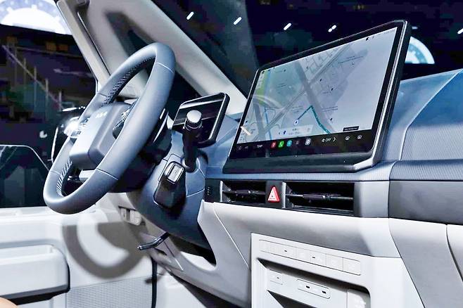 기아 PV5에는 현대차그룹이 심혈을 기울여 개발한 안드로이드 오토모티브 기반의 인포테인먼트 시스템, 즉 플레오스 커넥트 시스템이 실물로 탑재돼 관람객들의 체험이 가능하도록 마련됐다. 플레오스는 기존 내비게이션 중심의 UI와는 다른, 훨씬 더 스마트한 사용자 경험을 제공하겠다는 취지로 도입됐다.