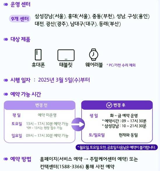 "평일도 원할 때 갤럭시 수리"…삼성 주말케어센터, 예약제 확대