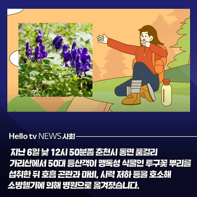 #등산객 #투구꽃 #사약 #맹독 #식물 #맹독성식물 #등산 #춘천 #강원 #가리산 #구조 #마비 #사건사고