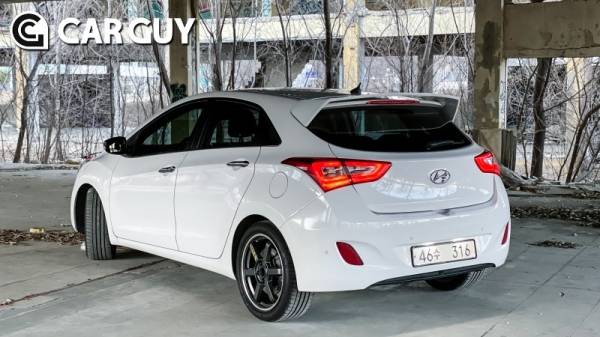 외장은 스포일러를 제외하면 대부분 순정 상태를 유지하고 있다. i30 2세대는 다른 해치백과 달리 뒷유리 각이 상당히 누워있는 테라스 해치백과 같은 형태다. 순정 스포일러는 비례상 너무 짧은 느낌이다.