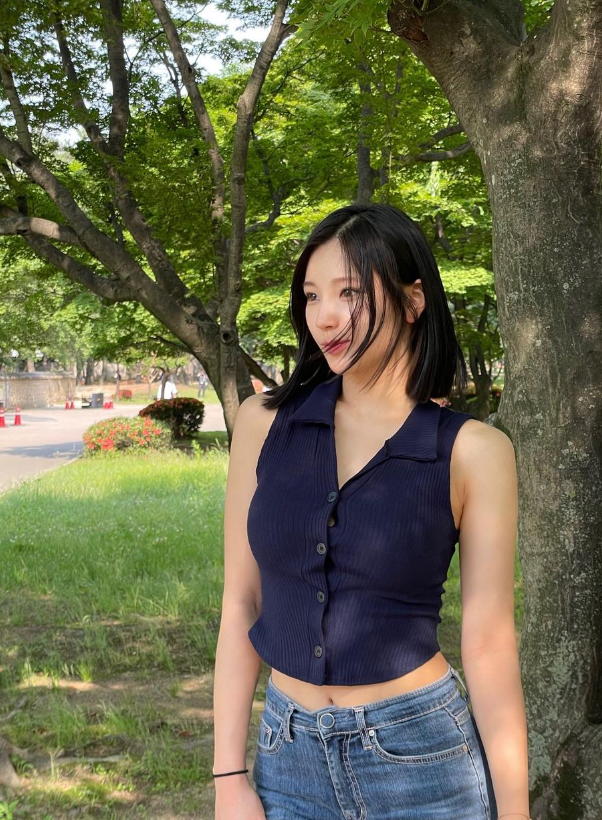 소희는 네이비 컬러 크롭 상의에 청바지룩으로 상큼발랄한 느낌을 자아냈습니다.