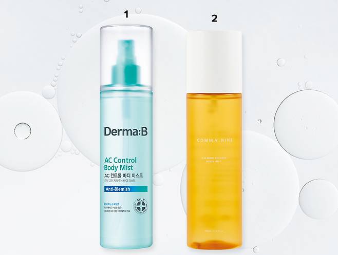 1 더마비 AC 컨트롤 바디 미스트 멜라제로 V2와 나이아신아마이드가 얼룩덜룩한 잡티를 개선하고 피부 톤을 밝힌다. 보습 성분인 글리세릴글루코사이드가 피부 유수분 밸런스를 맞춰준다. 200ml 2만원.