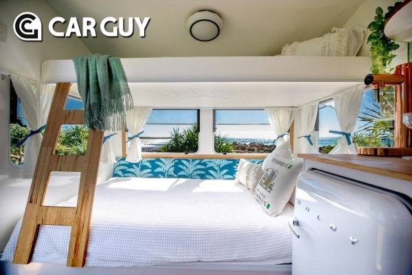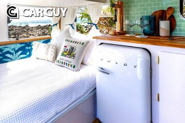 기본적으로 12V 전원 관리 시스템을 통해 실내 조명이 작동한다. 레트로 스타일의 130L 용량 냉장고, 듀얼 전원 콘센트, 휴대용 인덕션 쿡탑을 갖췄다.
