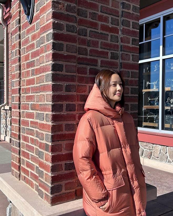 사진 속 손태영은 톤 다운된 핑크 컬러의 푸퍼 패딩을 선택해 차분하면서도 생동감 넘치는 분위기를 연출했는데요.