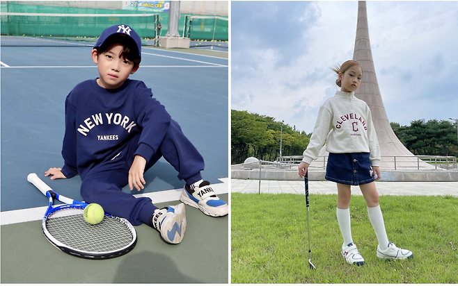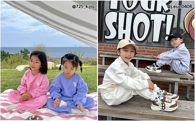 MLB 키즈로 풀 코디한 아이들의 모습이