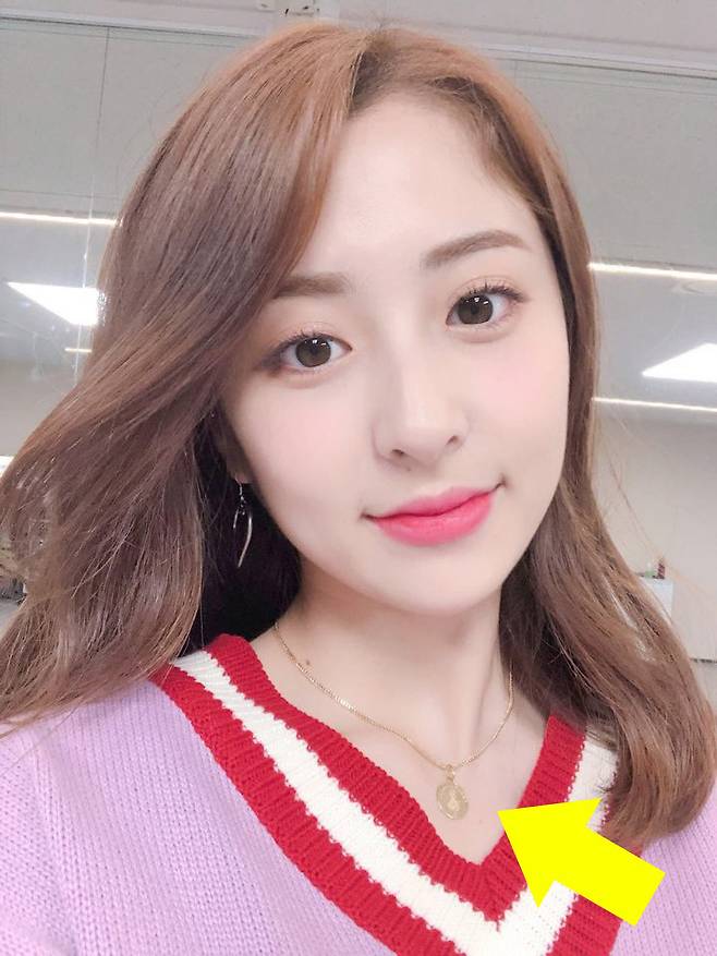 현재 대한민국을 대표하는 걸그룹 멤버가 되어 전 세계 수많은 팬들의 사랑을 받는 것도 할머니 덕분이라고 할 수 있는데요. 허윤진이 공식 일정이 없는 평소에 하고 다니는 동그란 모양의 펜던트 역시 할머니가 선물해 주신 것이라고 합니다.