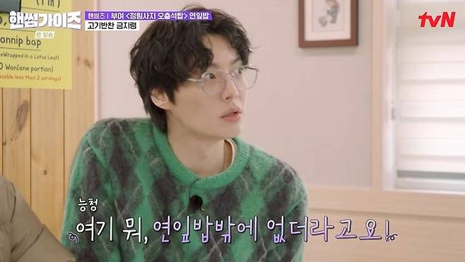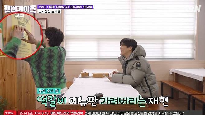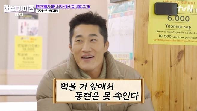 식당으로 간 안재현, 차태현은 김동현이 또 떡갈비를 추가 주문할까봐 미리 작당모의를 했다. 안재현은 빨리 식사를 해결하려는 마음에 메뉴판에서 떡갈비를 가렸고, 차태현은 사장님에게도 "떡갈비 소진됐다고 말해달라"고 부탁했다. 김동현이 오자 안재현은 "연잎밥만 한다더라"고 강조했지만, 김동현은 메뉴판에서 떡갈비를 발견했다. 안재현은 "아니야. 소진됐어"라고 끝까지 속이려 해 웃음을 안겼다.