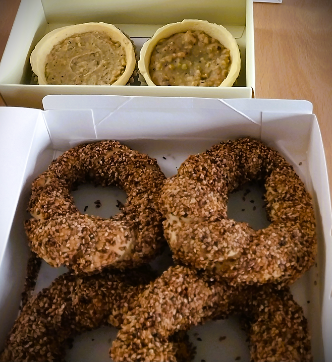 점심을 먹고 커피는 수제 빵과 함께 먹었다. 빵은 오트밀을 갈아서 설탕을 안 넣었다고 해서 하나 먹었다. 타르트에는 스테비아 설탕을 넣고 제로 초콜릿을 넣고 견과류를 넣고 만들었다고 해서 그것도 한개 먹었다. 밀가루가 들어가서인지 혈당이 40정도 올랐다.
