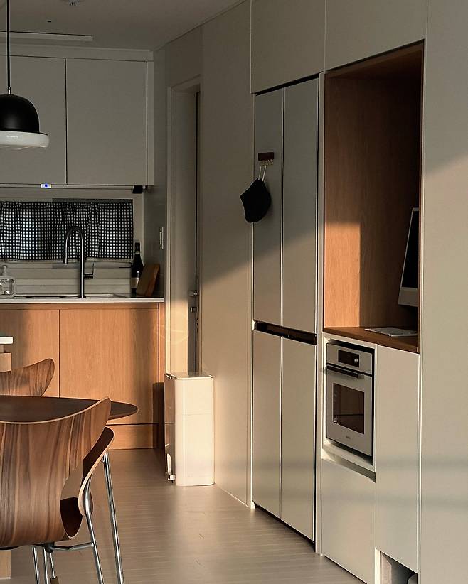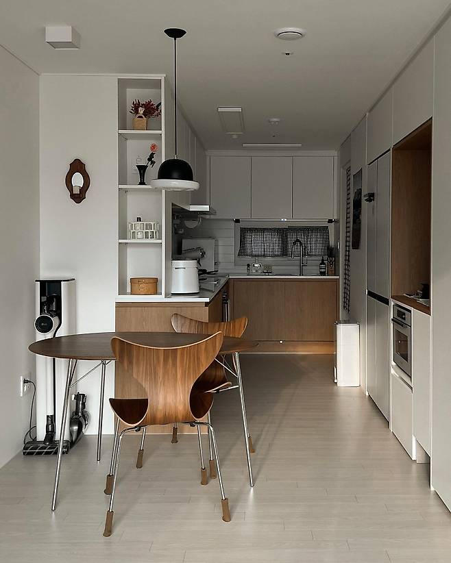 사실 이 부분만 빼면 전부 깔끔한 화이트 톤이어서 정말 마음에 들었어요. 집은 가장 많은 시간을 보내는 곳이어서 차분하면서 따뜻하고, 아늑해야 한다고 생각했거든요. 이 컨셉이 반영되어 지금의 집에는 우드와 블랙을 적절하게 섞어서 인테리어했습니다.