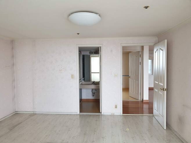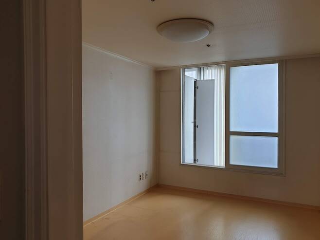현관문에서 왼쪽에 위치한 방이에요. 남향으로 베란다가 있지만 거실을 통해서만 나갈 수 있는 구조와 애매하게 큰 창 사이즈라 철거하기로 했어요. 아이들 놀이방으로 쓸 예정이라 환하게 빛이 들어오는 것이 좋겠다는 생각이 들더라고요.