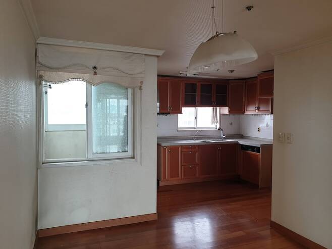 기존에는 주방은 작고 다용도실이 길게 빠진 구조였어요.