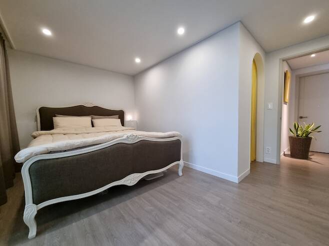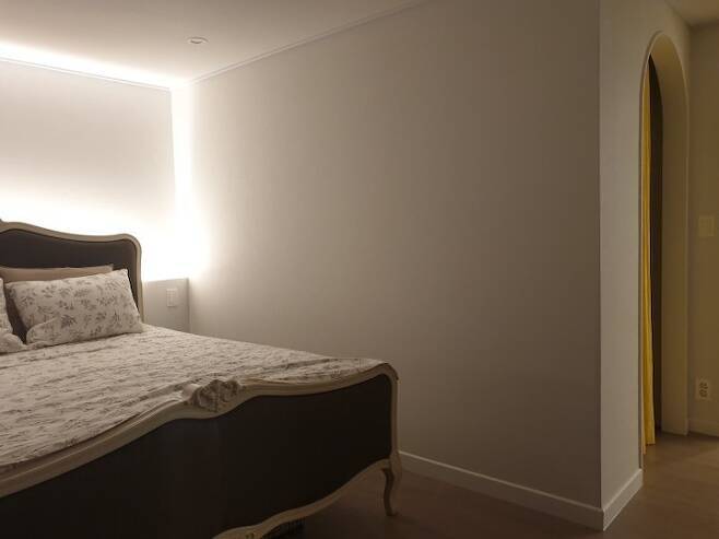안방 가벽을 시공했어도 킹사이즈 침대를 배치하고도 양옆에 공간에 여유가 있어요.
