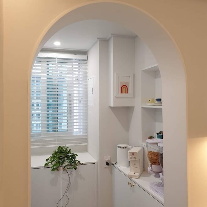 3년 전 인테리어 할 당시에 이곳저곳 아치로 꾸미면서 혹여 질리면 어떡하지 고민도 있었는데, 아직까지도 질리지 않는 것 보면 참 다행이다 싶어요.