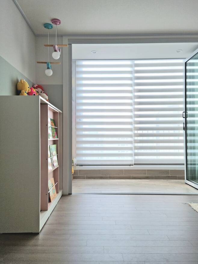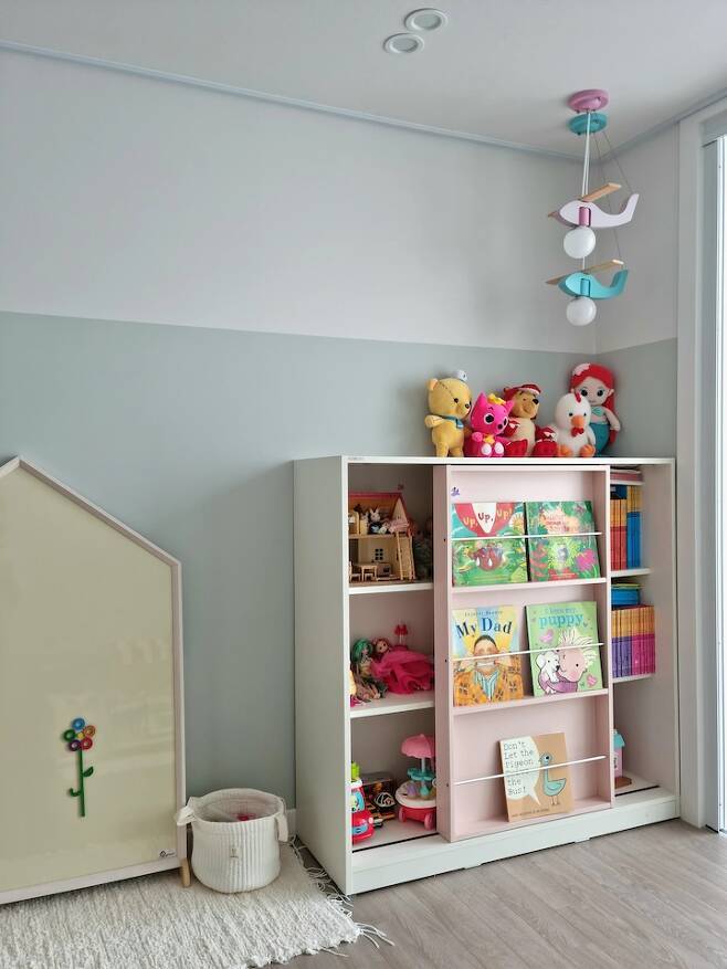 장난감은 아이방에서 주로 가지고 놀고 거실에서는 주로 책을 보고 놀아요.