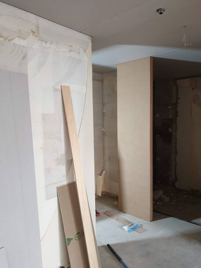안방 가벽 위치를 정하는데 참 고민이 많았어요. 창을 가로질러 가벽을 세울 것인가 창과 평행하게 가벽을 세울 것인가. 안방 가벽을 검색해 보면 주로 창을 가로질러 세운 경우가 많더라고요. 저희는 안방이 훤히 들여다보이는 구조가 싫어 창과 평행하게 화장실 앞에 가벽을 세우기로 결정했어요.