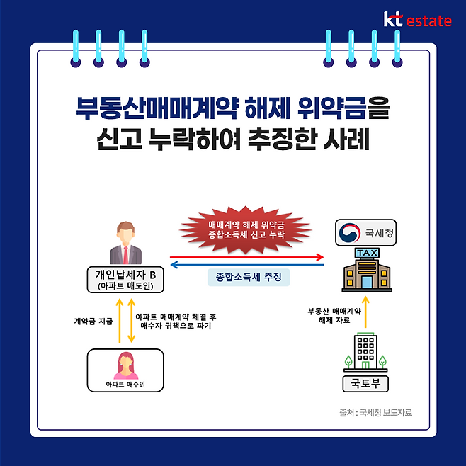아파트 계약 불발 시 계약금 반환 여부에만 집중하고 사후 처리를 간과하기 쉬운데 자칫하면 가산세까지 물 수 있다고 합니다.
