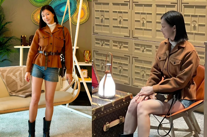 최근 하연주는 브라운 컬러의 스트랩 자켓과 짧은 데님 숏팬츠를 매치한 스타일로 화제를 모았습니다. 자켓은 허리 라인을 슬림하게 잡아주면서도 세련된 분위기를 자아냈고, 하의로 선택한 짧은 팬츠는 각선미를 한껏 살리며 발랄하고 경쾌한 느낌을 줬죠.